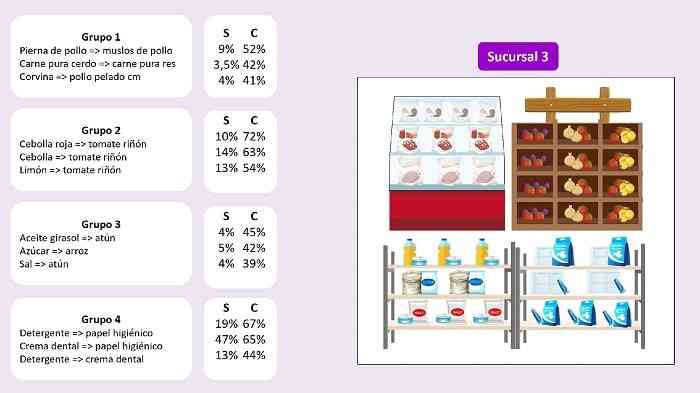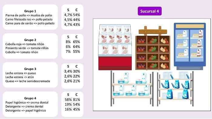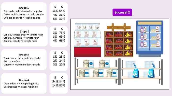 Por lo indicado en los párrafos anteriores, hay productos que son básicos y que deben estar juntos, lo que aporta a mejorar el tiempo de estadía en las tiendas y por supuesto permite encontrar lo necesario para el hogar. Además, las asociaciones de productos obtenidos en cada regla permiten que el minorista tenga una idea general de la redistribución que se debe hacer en cada percha, congelador o mostrador y así facilitar la comprensión de cada cambio a realizarse.