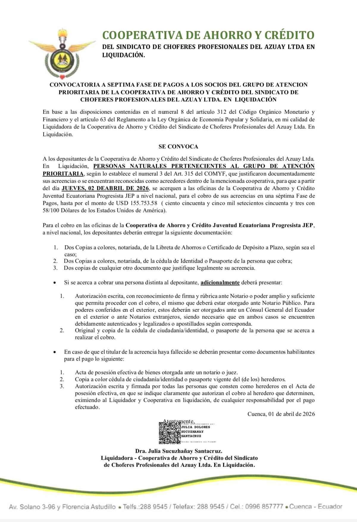 Convocatoria a la Séptima Fase de Pagos para Socios Prioritarios Publicado por Redacción el 01/04/2026 Compartir0 Redacción