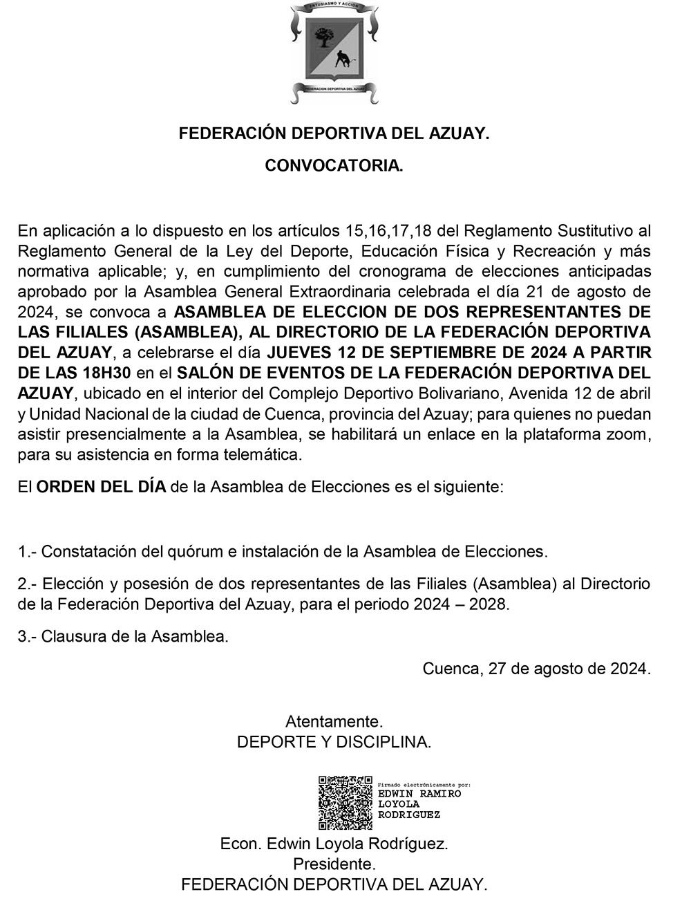 Convocatoria Asamblea Elección filiales FDA Publicado por Redacción el 27/08/2024 Compartir0 Redacción