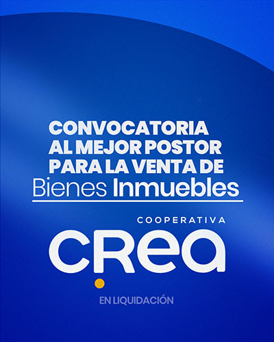 Convocatoria Pública de la Cooperativa CREA para la Venta de Bienes Inmuebles Publicado por Redacción el 15/12/2025 Convocatoria Pública de la Cooperativa CREA para la Venta de Bienes Inmuebles Clic aquí Compartir1 Redacción