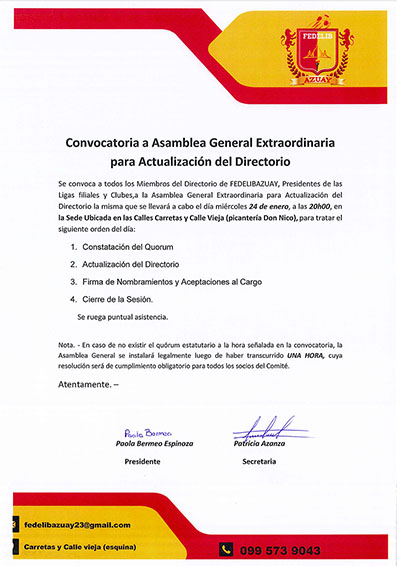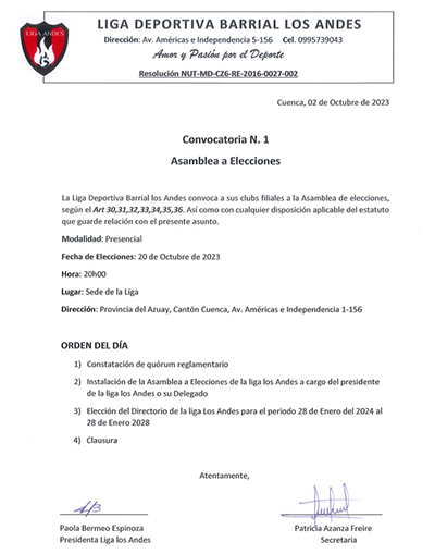 Primera Convocatoria a Asamblea de Elecciones – Liga Deportiva Barrial Los Andes