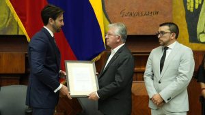 La distinción fue entregada en el Pleno por el presidente de la Asamblea, Niels Olsen Peet, al padre Marcelo Farfán, sdb, Inspector de los salesianos en el Ecuador, quien expresó su agradecimiento por este reconocimiento a la labor educativa salesiana en la ciudad. El acto contó con la presencia de autoridades y representantes de la comunidad educativa.