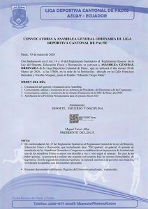 Convocatoria a Asamblea General Ordinaria de la Liga Deportiva Cantonal de Paute