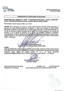 Solicitud de Aprovechamiento de Agua Presentada ante el MAATE – Santa Isabel