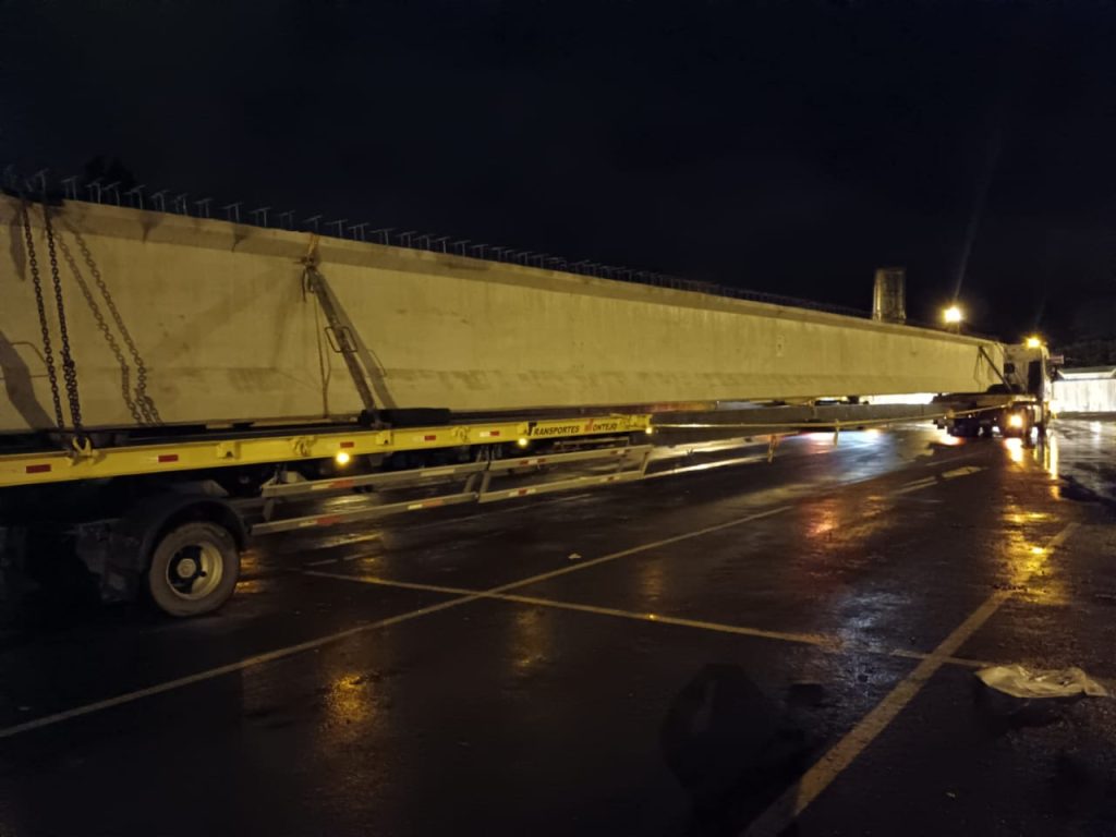 El Coordinador de la Unidad Ejecutora de Proyectos, Sebastián Jetón, informó, que las vigas, son de 40m de largo y 50 toneladas de peso, qué inició el viaje ayer, las que contaron con un equipo de operadores y conductores de la plataforma , que se comunican por la radio y cuentan con controles hidráulicos, entre otros equipos.